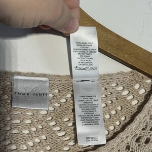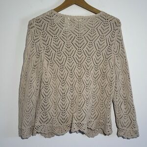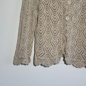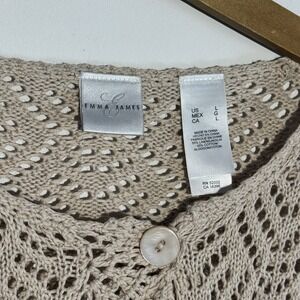 Emma James Womens Large Linen Blend Open Knit Cardigan Button Scallop Hem Tan