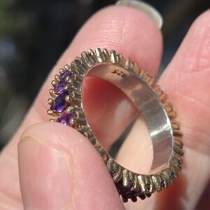 This stunning ring features vibrant marquise cut amethyst gemstones set in a luxurious gold band. Perfect for adding a touch of elegance to any outfit. This is a NEW piece from my personal collection that I made in 2019 for my Dark Kharma Collection. This is made with solid 925 sterling silver with 24k gold findings. Please ask questions and make an offer. I can't say yes if you don't ask!