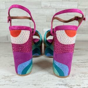 Kurt Geiger London Kensington Glitz Rainbow Wave Rhinestone Platform Sandals SZ 38