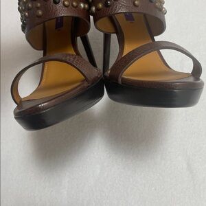 Ralph Lauren Purple Label Boho Leather Studded Open Toe Heels