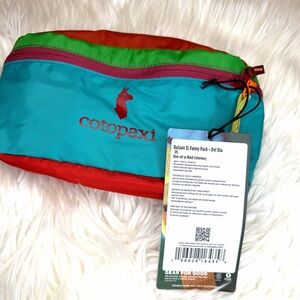 This NWT Cotopaxi Bataan 3L Fanny Pack from the Del Día Collection is the perfect adventure-ready accessory! Every Del Día pack is made using repurposed materials, which means each colorway is 100% unique—no two are ever the same.