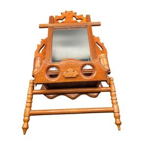 Keywords: Vintage shaving mirror, Wood shaving stand, Antique shaving mirror, Ornate mirror, Bathroom decor