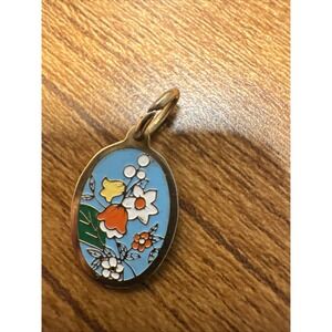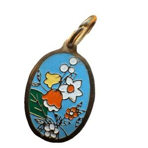 Vintage Cloisonné Brass Double Sided Enamel Flowers Taiwan 3/4" Pendant