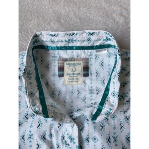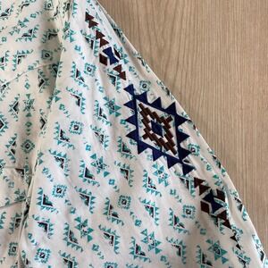 Panhandle Rough Stock Aztec Southwest Embroidered Pearl Snap Shirt Women L Teal