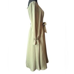Step out in style with this elegant olive off-shoulder dress. Perfect for any occasion, this dress features a flattering silhouette and a chic tie waist. Elevate your wardrobe with this timeless piece. This is an unbranded dress. Polyester. Size medium