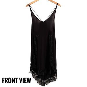 Free People Black Eyelash Lace Adjustable Spaghetti Straps Slip Dress Size Small