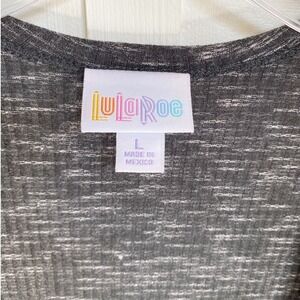 Keywords: LuLaRoe, cardigan, duster, sleeveless, open front, gray, space dye, long cardigan, women's fashion, casual wear, layering, boho, comfortable, size L