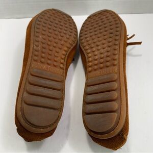 Minnetonka Women's Kilty suede moccasins Shoes, Brown/Cognac, Size 9.5