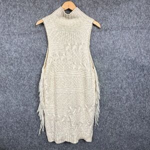 She+Sky Sweater Womens S Sleeveless Chunky Knit Western Boho Fringe Mock Neck