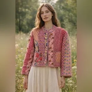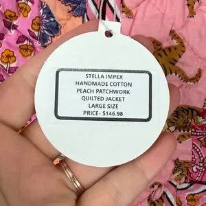 NWT Stella Impex Handmade Cotton Peach Patchwork Quilted Jacket Pink Small