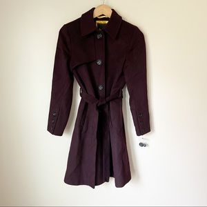 Sam Edelman Belted Wool Blend Trench Coat Wine Burgundy 2 NWT