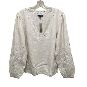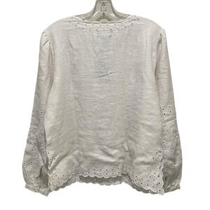 J Crew Bungalow Top Natural Ivory Womens Size Small Linen Eyelet Long Sleeve