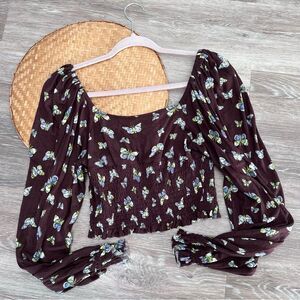 Urban outfitters butterfly print smocked balloon sleeve blouse