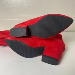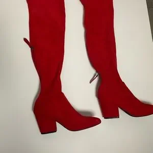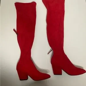 Thigh High Block Women Pointed Toe Stretch Over The Knee Red Boots Size 8