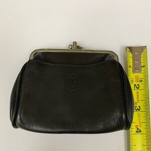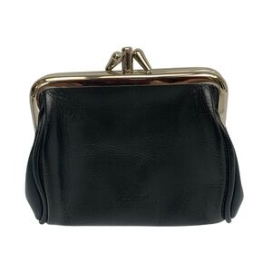 Buxton Genuine Black Leather Coin Purse Kiss-Lock