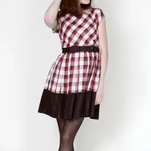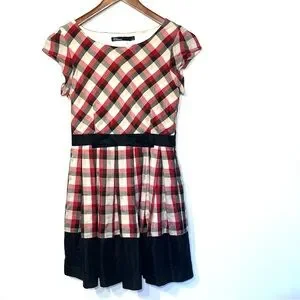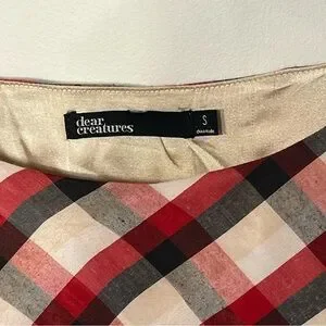 Dear Creatures plaid fit & flare mini dress, lined, round neck, small. Side zip closure. Underarm to Underarm measurement laid flat is approximately 16”. Underarm to bottom is approximately 26”. No rips, stains, or holes