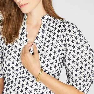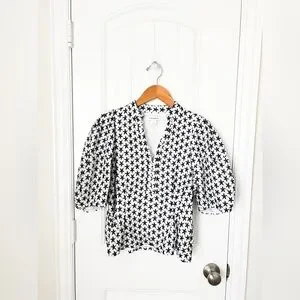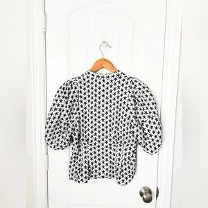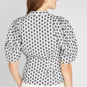 Club Monaco Embroidered Balloon Sleeve Top White Navy Size Small