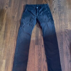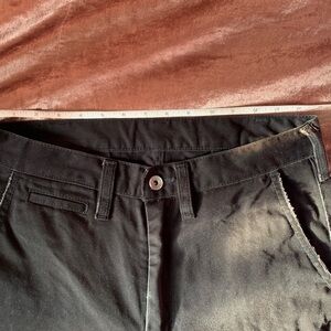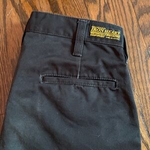 Iron Heart Black (not blue) Japanese selvedge denim Selling in as is worn condition. They are quite worn in, a bit of pill and pocket edges have wear. Small wear makes on lower back left leg (photographed ) Not too stiff, average denim feel zipper fly Straight slim leg Size 31 fits true Waist 31” Rise 10” Hip 41 Inseam 34” Ankle opening width 7” I have a fluffy white cat, there will be fur