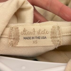 Stylish cream cropped hoodie with vibrant graphic by altar’d state. Features a retro design with bold colors. Comfortable and trendy for any casual occasion. Woman’s size XS NWOT
