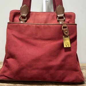 Etienne Aigner Deep Red Canvas Tote