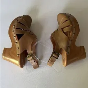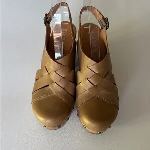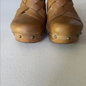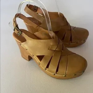 Korks by Kork Ease Platform Clogs Sandals in Washed Tan Buckle Studs Size 7