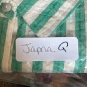 JAPNA stripe elastic waist button resortwear casual beach summer short set NWT S