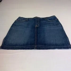 David Kahn Cindy Denim Skirt With Split Side And Embroidered Pockets. Womens Size - 6 Fly Zip With Button Closurelenth 17.5measurements Are Approximate. Gently Used With No Flaws.