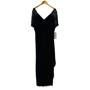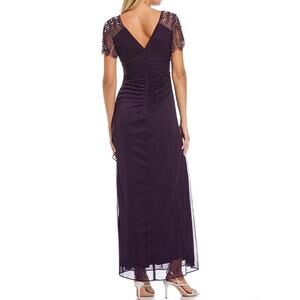 Xscape Short Beaded Sleeve V Neck Draped Dress Size 18W NWT Plum