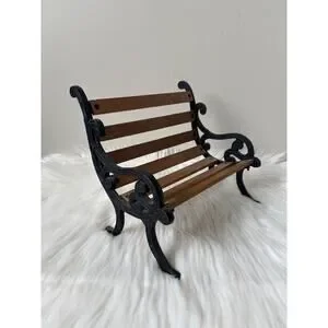 Vintage Miniature Cast Iron Frame w/ Wood Slats Doll/Bear Park Bench- 8.25" Tall