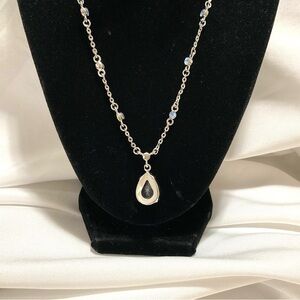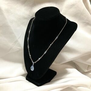 This listing is for an Ocean Blue Teardrop Pendant on a silver tone chain that measures 19” including the 2” extender. The pendant is 1” in length & is made of glass. It would be perfect for any occasion. It’s in like new condition.