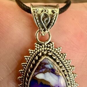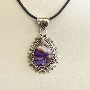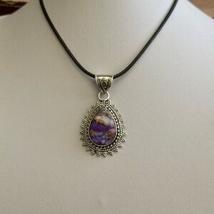 Southwestern Purple Copper Dahlia Turquoise Teardrop Pendant Sterling Silver