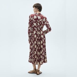 Mango Burgundy Floral printed pleated dress NWT