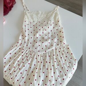 Free people asymmetrical white/cream with red polka dot dress
