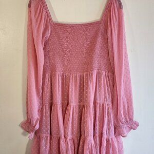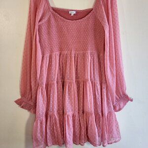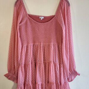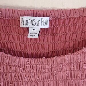 Patrons of Peace Smocked Babydoll Mini Dress Sheer Boho Peasant Medium