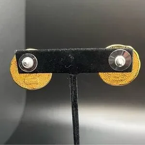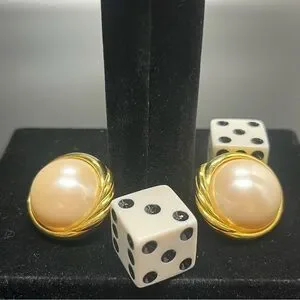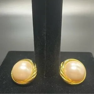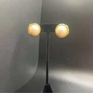 Marvella Faux Pearl Cabochon Style Clip On Earrings Gold Tone Chunky Vintage