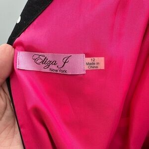Eliza J black polka dot midi length woman’s sleeveless dress. Zip closure, no belt.