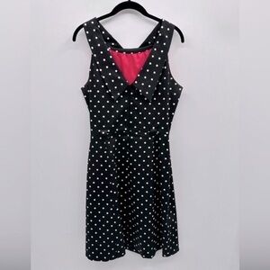 Eliza J black polka dot midi length woman classic Doris Day sleeveless dress. 12