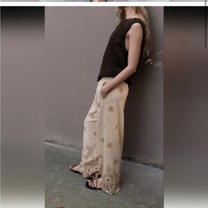 NWT ZARA VACATION EMBROIDERED PANTS SIZE M 🚨FIRM PRICE NO DISCOUNT