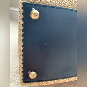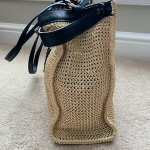 Color Natural/beige raffia, black trim, and brown handles