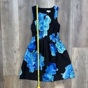 Calvin Klein Blue Black Sleeveless Floral Fit & Flare Cocktail Dress Sz 8 Spring