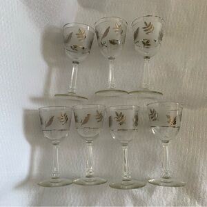 This is a set of 7 vintage Libbey frosted silver leaf foliage stemmed wine glasses. Mid century modern design; anywhere from the 50’s to the 70’s.