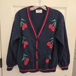 Kid's 100% Cotton Navy Cherry Sweater - Preppy, Relaxed Fit, Y2k, Gilmore Girls