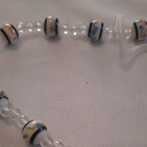 nwot seed and sequin bead clutch bag with bead handle. cream color. with gold and clear beads. kiss loch clasp. beautiful!