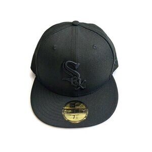 59Fifty New Era Size 7 1/4 Chicago White Sox Fitted Hat Cap Basic Black On Black