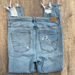 American Eagle Outfitters Women's Light Blue Distressed Hi-Rise Leggings Size 12