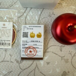Red apple necklace from Disney Shanghai. Necklace is 0.8g of 24K gold with certificate of authenticity. A collectible and an heirloom. Encased in beautiful red Apple case. New.