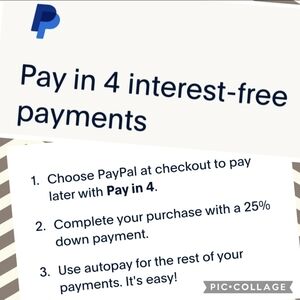 ***Purchase this item and break up your total into 4 low, convenient payments with PayPal! Simply checkout as you normally would and choose PayPal as your payment option instead of your regular payment method. Yes! You can even send/accept offers and still use PayPal at checkout!***