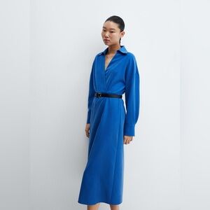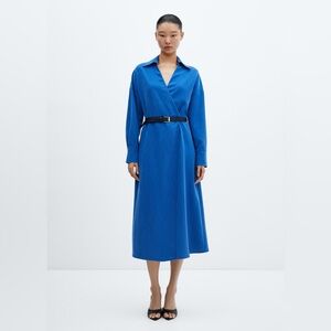 Mango Blue belt shirt dress NWT
