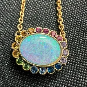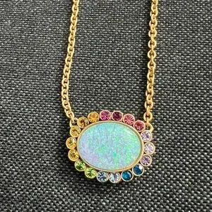 This Regency Chain Necklace features a small gold chain with iridescent crystal at the centre which is surrounded by multi-colour crystals.