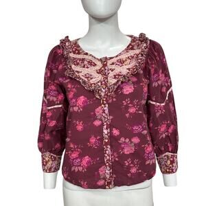 Loveshackfancy Floral Spiced Apple Red Morrison Top Size XS
